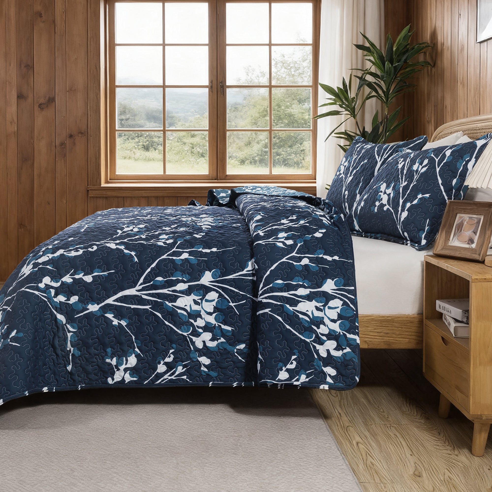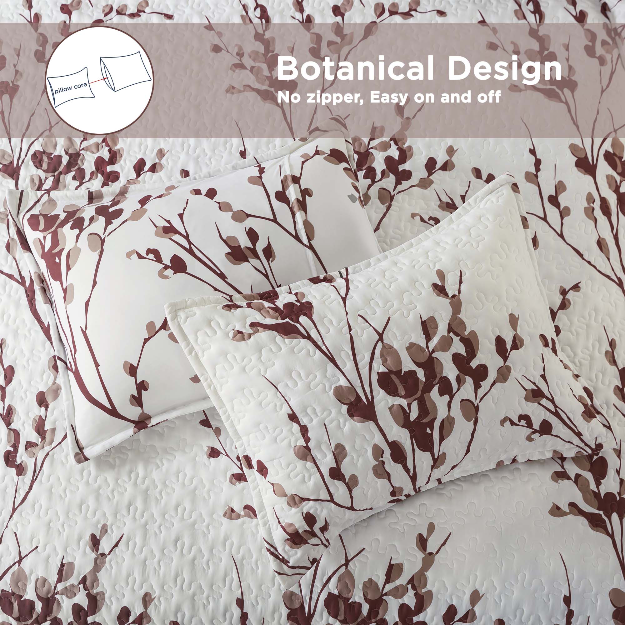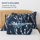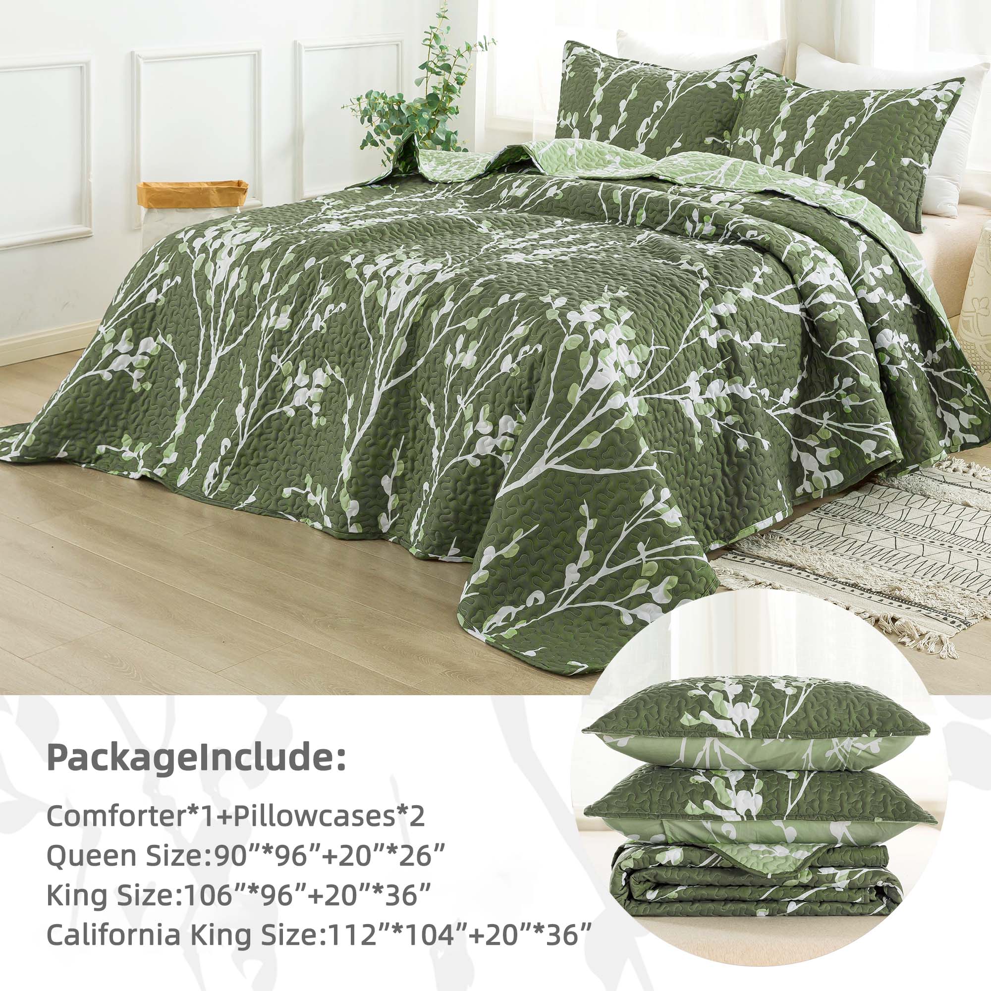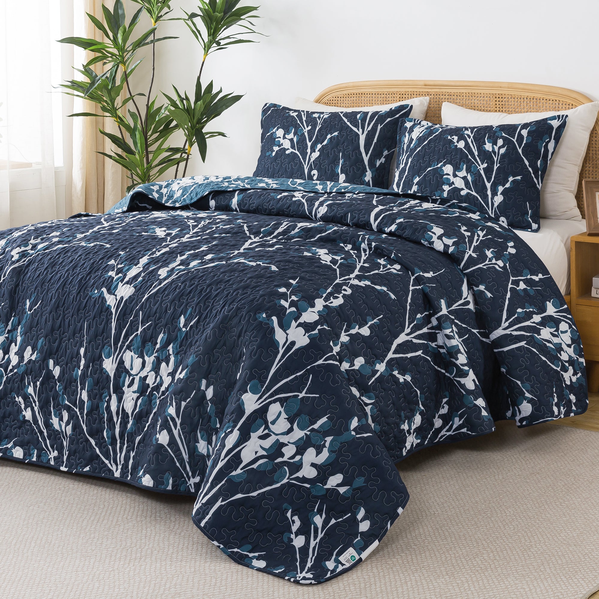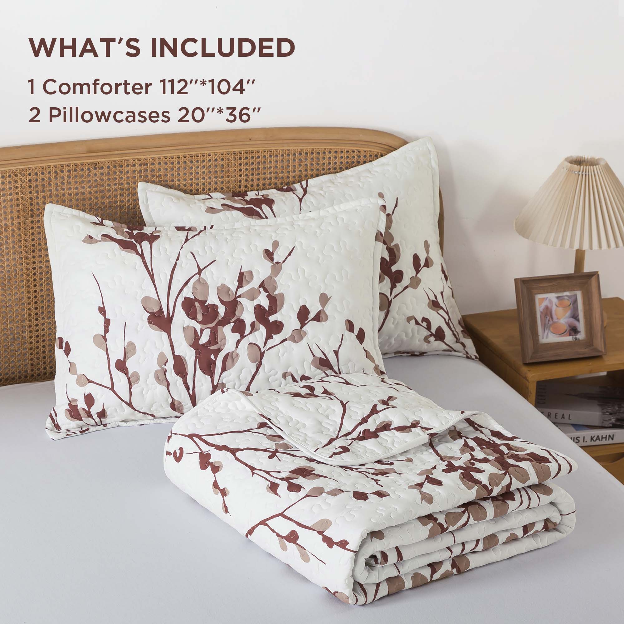 - What You Can Get: The branch quilt set includes 1 quilt (112x104 inch) and 2 standard pillowcases (20x36 inch) without pillow-insert. Because of the Vacuum-package, please wash and tumble dry it at Low Heat or expose it to sunlight and tap it gently.