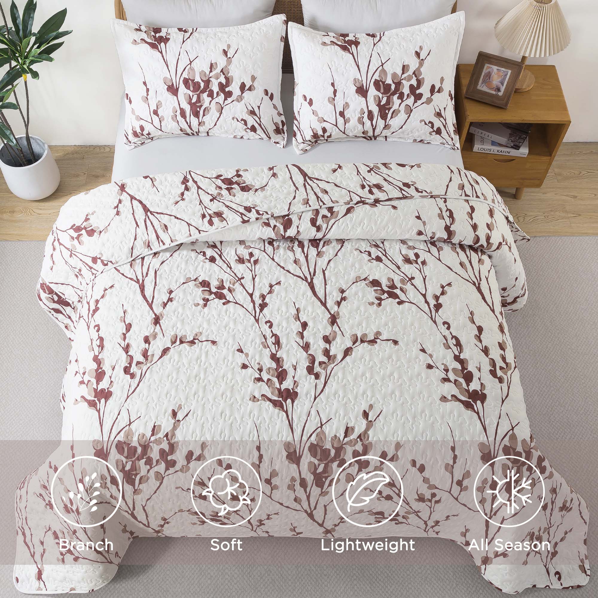 - Stylish Reversible Design: This lightweight quilt is printed with beautiful floral and leaves pattern in farmhouse sytle. The coordinating color and delicate botanical design make the bedspread reversible. You can change the side as often as you like.