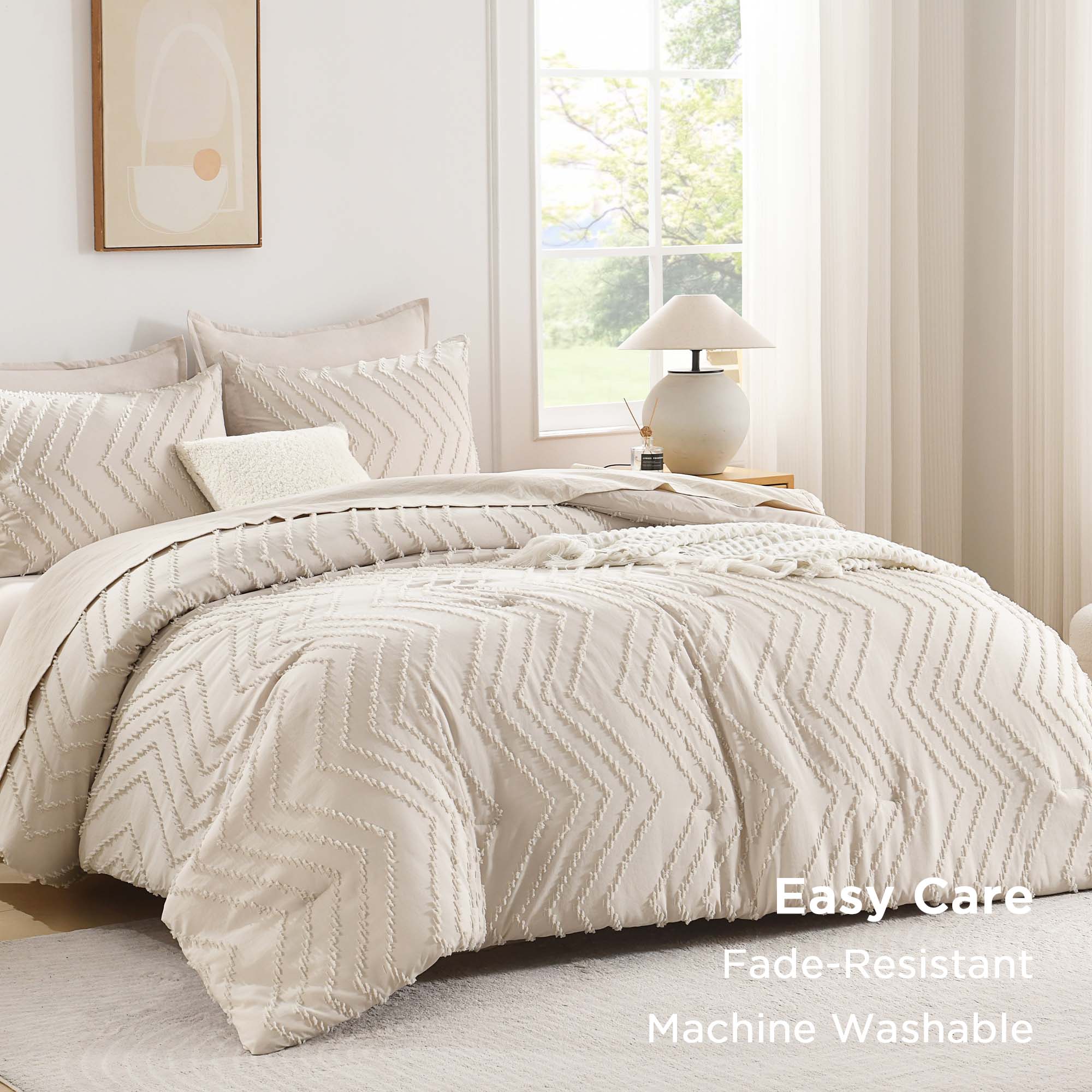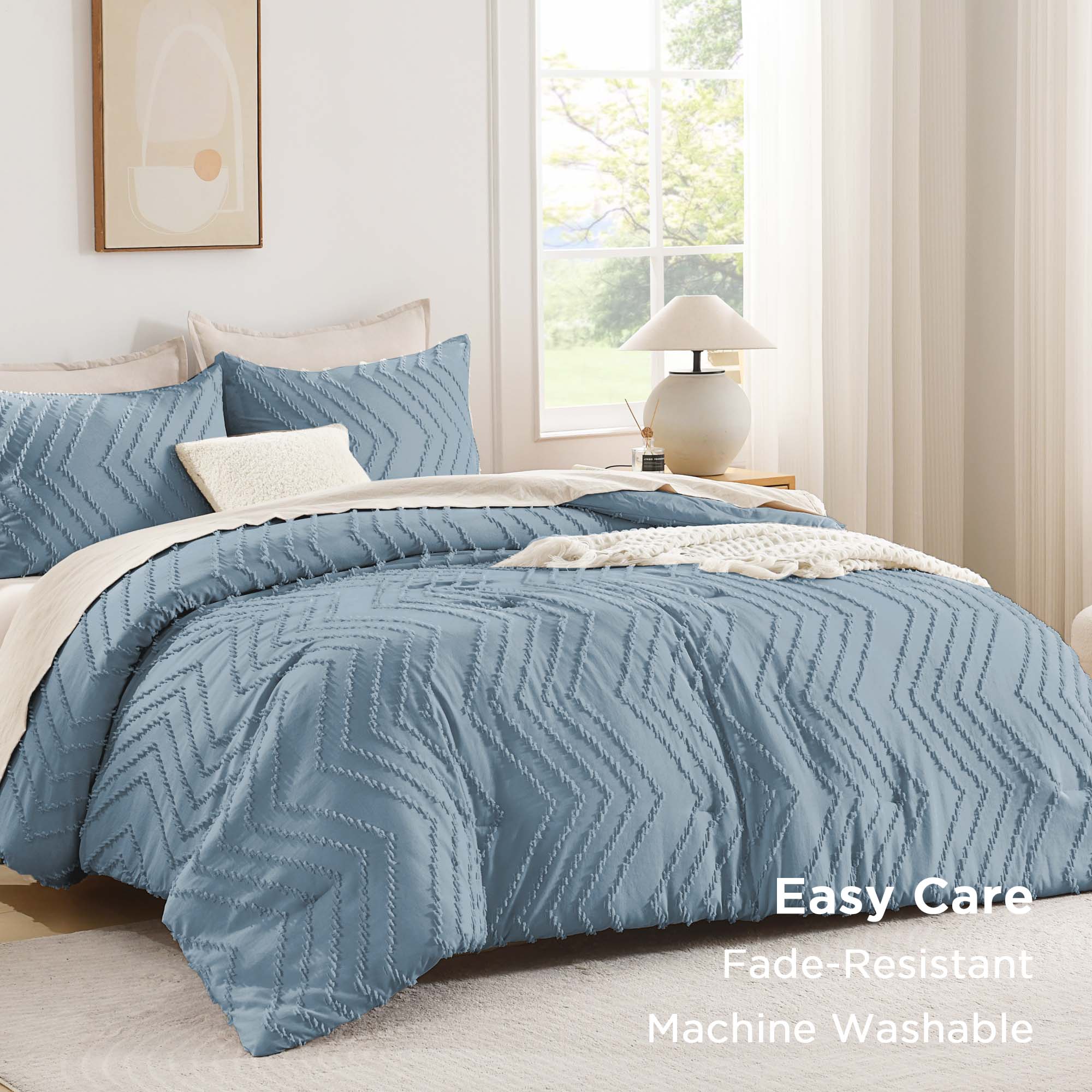 - 【Easy Care】: Machine wash cold separately on a gentle cycle. Due to the vacuum-sealed packaging of the king comforter, please note that upon receipt of your new bedding product, it is highly recommended to dry in the sun for a few hours to make it fluffy again.
