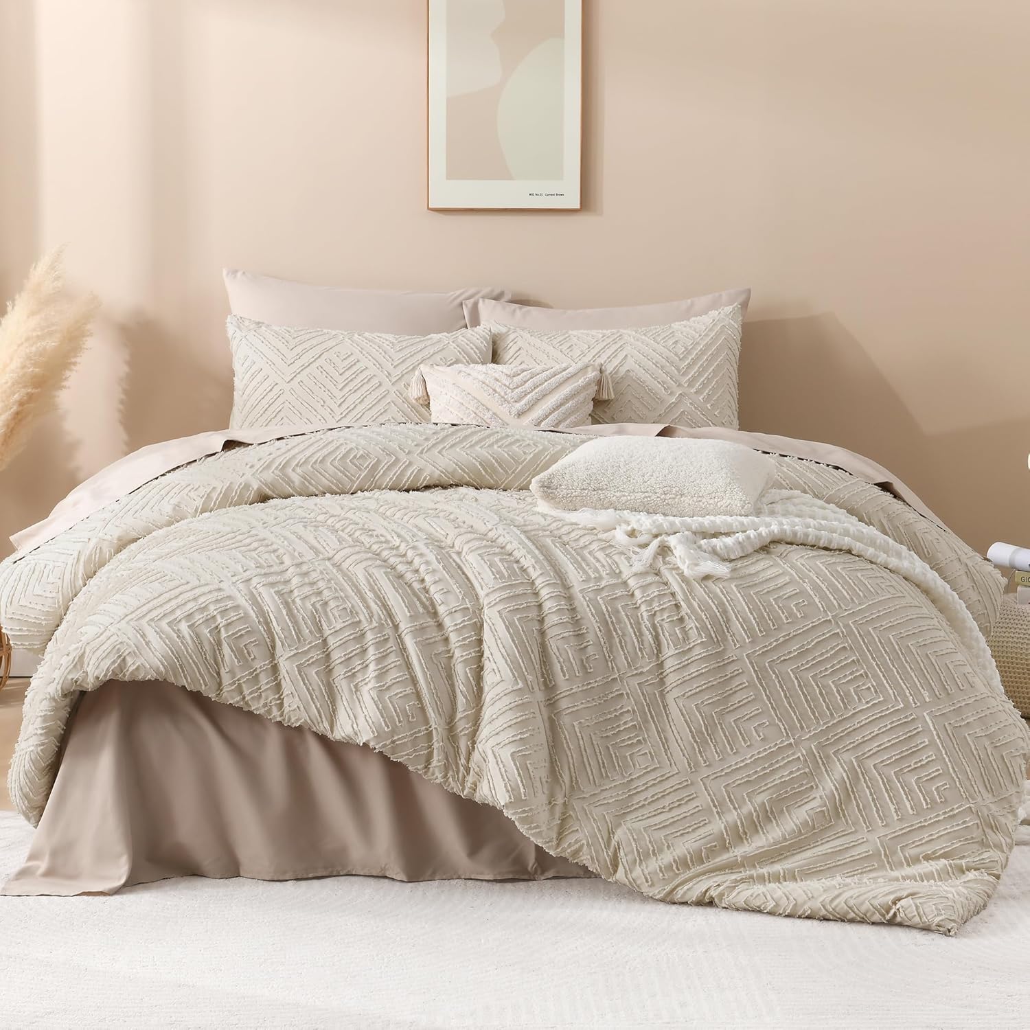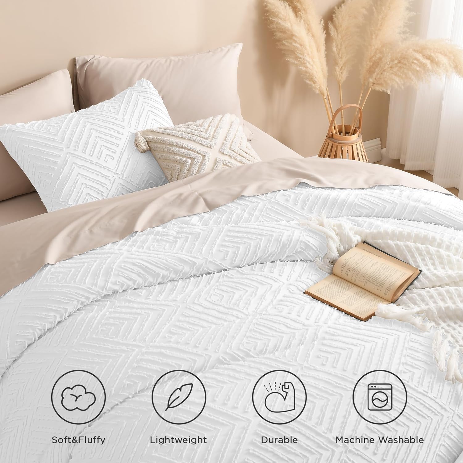 • 【Superior Fabric】Andency beige comforter features a reversible design with delicate and lovely tufts on the front, stunningly soft and skin-friendly brushed microfiber on the reverse, providing you with a comfortable night's sleep all year round!